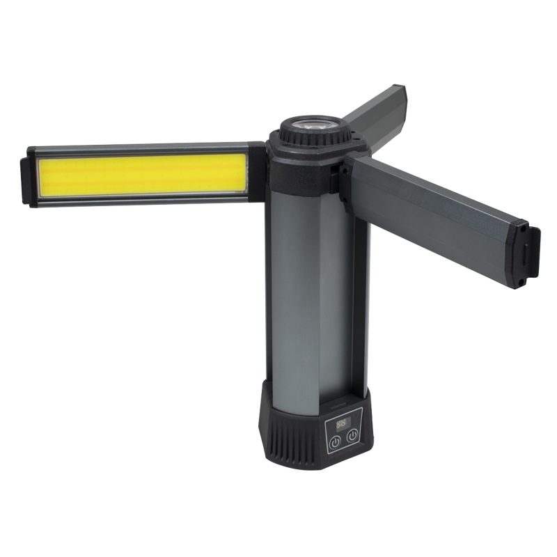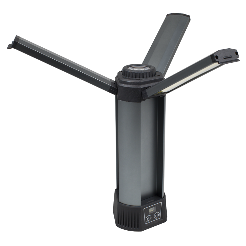 2000 LUMENS - Three super bright 8W COB LED panels produce up to 2000 lumens and a smaller 5W SMD LED spotlight produces 400 lumens.FOLDING LIGHT PANELS - LED Panels create a 360 spread of light or rotate and tilt to create a focused beam of light.