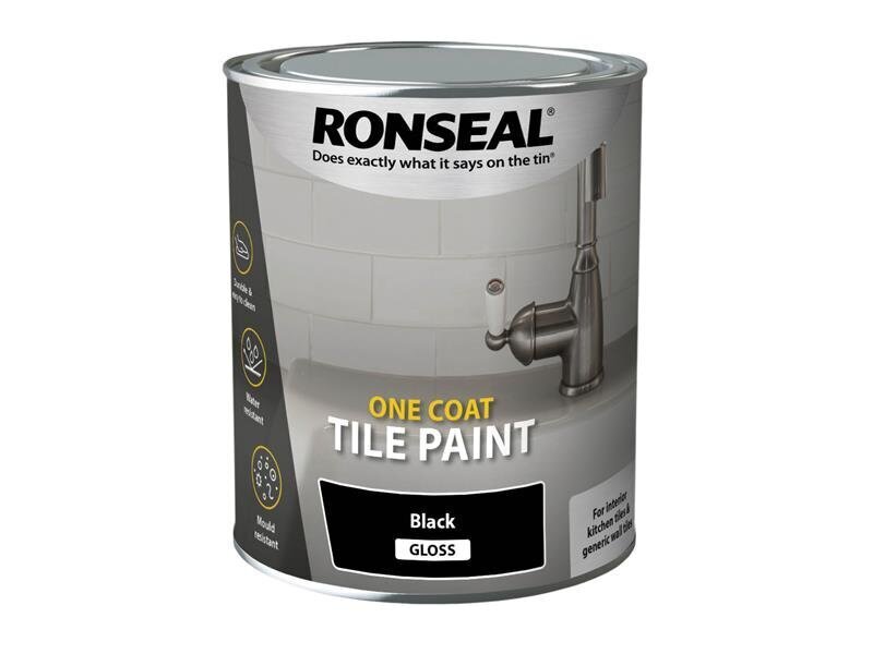 1 x Ronseal One Coat Tile Paint Black Gloss 750ml