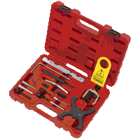 Timing tool combination kit suitable for a wide range of belt or chain driven petrol and diesel engines.Contains a camshaft sprocket puller and flywheel locking tools.