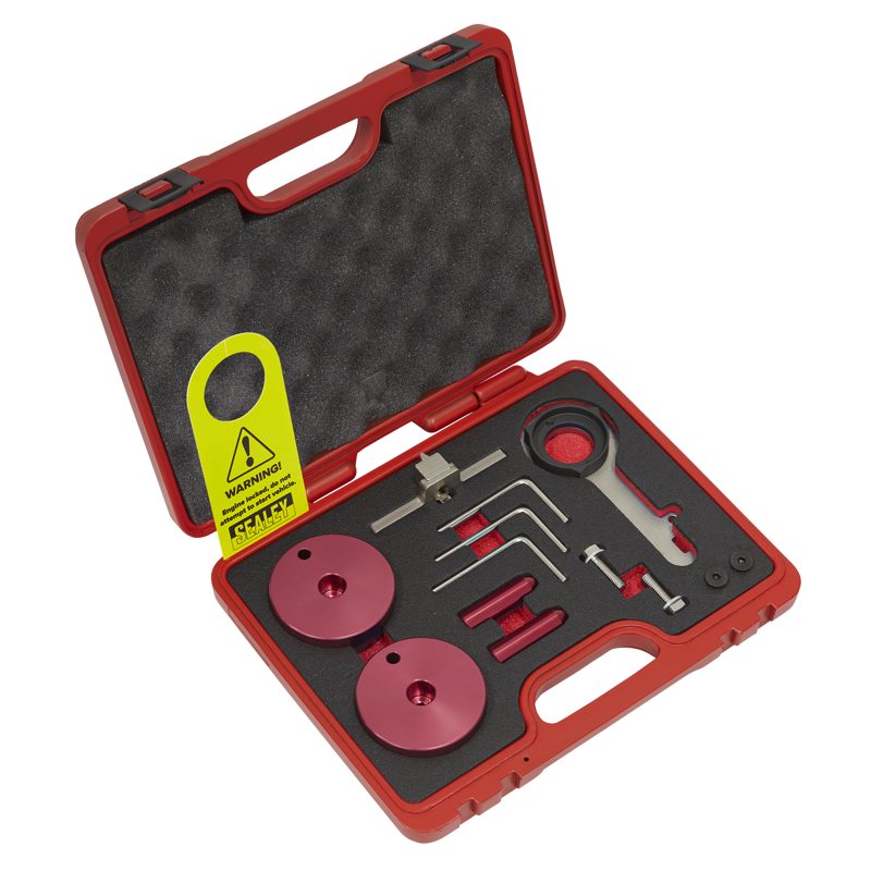 Designed to fit the new generation of Ford EcoBlue belt in oil diesel engines.Contains the special tooling essential for locking the engine in its timing position.