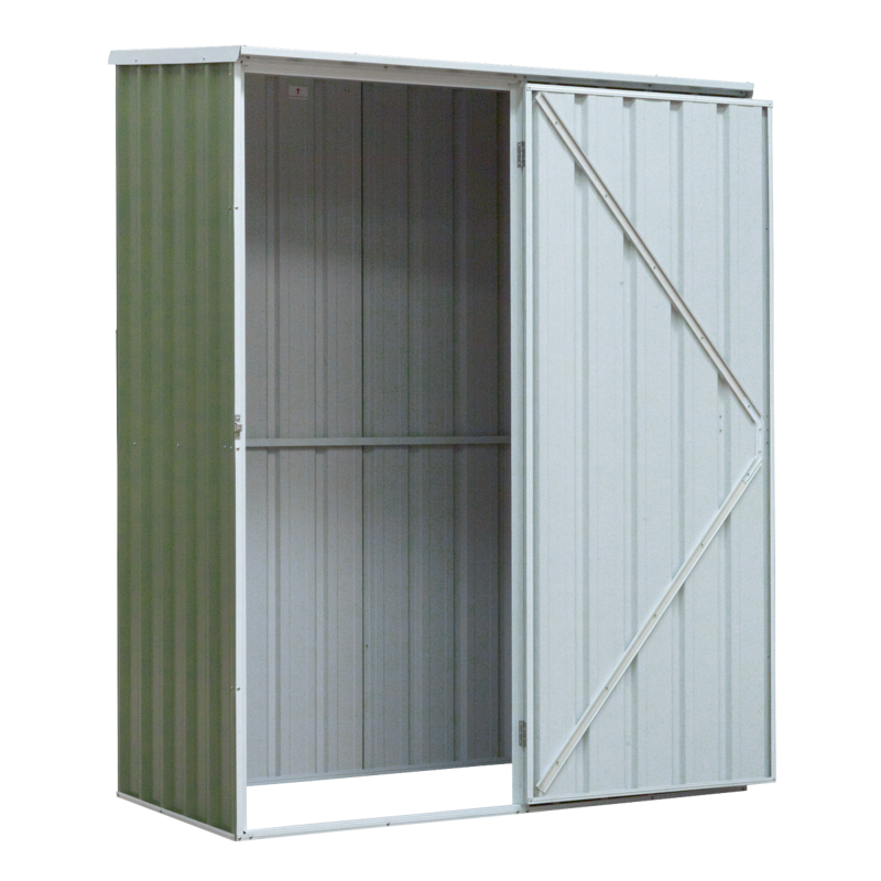 SAFE AND SECURE - Single door fitted with cross bolt and eyelet that accepts padlock (not included) for additional security.