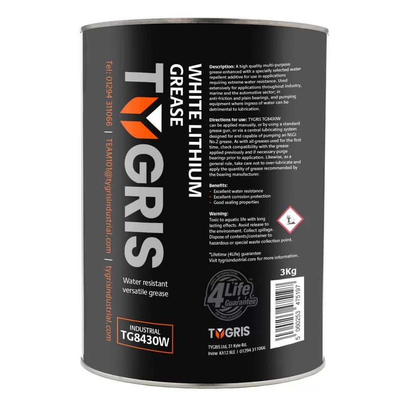 TYGRIS White Lithium Grease is a premium quality multi-purpose grease for use in all anti-friction and plain bearings subject to high load conditions. Used extensively for applications throughout industry and the automotive sector.