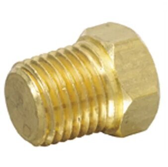 A precision-engineered NPT hex head brass plug manufactured by Vale, designed for reliable sealing in pneumatic and fluid control systems. This fitting features a hexagonal head design that enables easy installation and removal with standard tools.
