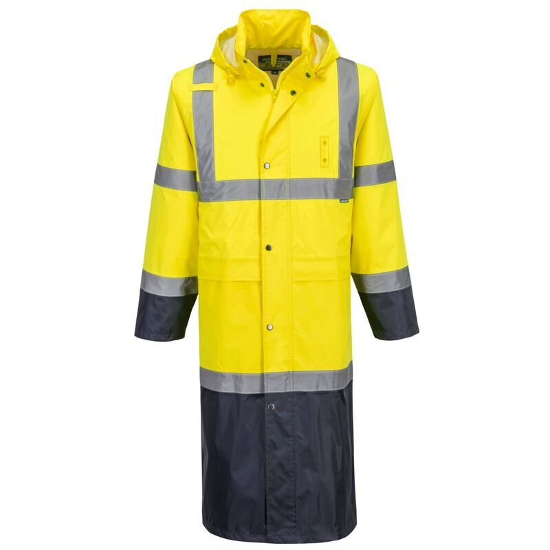 Portwest Hi-Vis Contrast Raincoat 122cm (Yellow/Navy / M / Regular Fit)