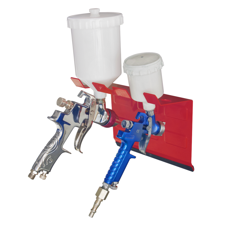 2 GUN HOLDER - Securely stores two spray guns without sliding or tilting, even when storing a single spray gun.MAGNETIC MOUNTS - Six heavy-duty magnets are used to attach the spray gun holder to any magnetic surface like spray booth walls, toolboxes and many more.