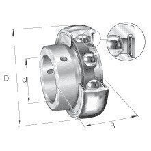 INA bearing insert with spherical outer ring, location by grub screws and P seals on both sides.