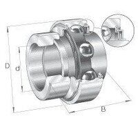 INA bearing insert with cylindrical outer ring, eccentric locking collar and L seals on both sides.