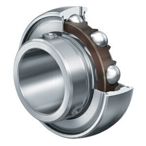 INA bearing insert with spherical outer ring, grub screws and P seals on both sides.