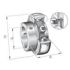 INA bearing insert with spherical outer ring, grub screws and P seals on both sides.