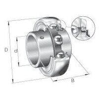 INA bearing insert with spherical outer ring, location by grub screws and R seals on both sides.