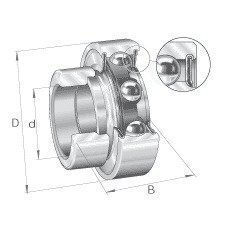 INA bearing insert with cylindrical outer ring, location by eccentric locking collar and P seals on both sides.