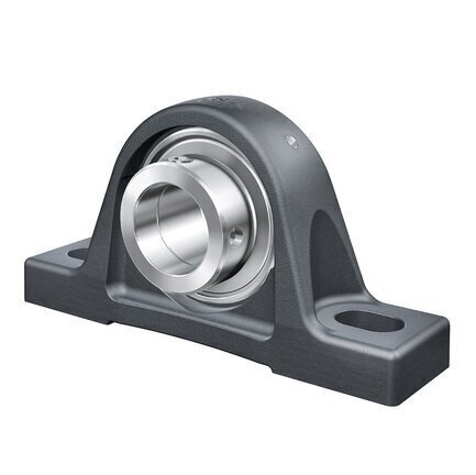 Normal duty pillow/plummer block bearing unit complete with radial insert ball bearing with eccentric locking collar and P seals. The cast iron housing includes a grease nipple for re-lubrication.