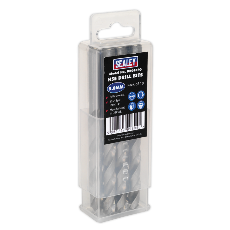 Sealey DB090FG HSS Fully Ground Drill Bit 9mm Pack of 10