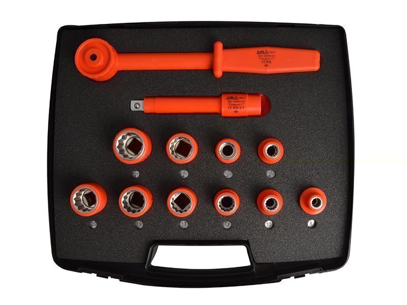 These ITL12 Piece 1/2in Inch Drive Socket Sets are fully insulated and exceeds international standards. They have a lifetime guarantee on the tool and insulation, and are supplied in a case.