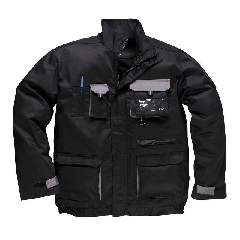 Portwest Texo Contrast Jacket This fashionable contrast colour jacket is practical and hardwearing. Multiple versatile features include back pocket for cap and glove storage and hook & loop cuffs for an adjustable fit.