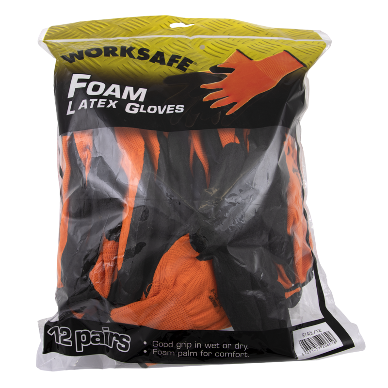 Sealey 9140L/12 Worksafe Foam Latex Gloves, Large - Pack of 12 Pairs