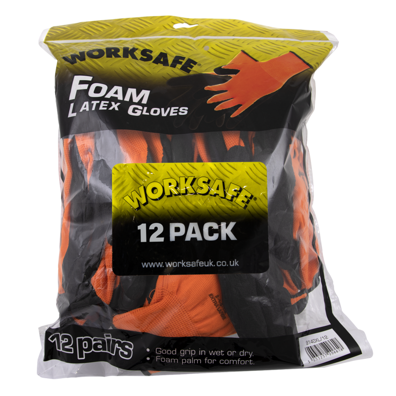 Sealey 9140XL/12 Worksafe Foam Latex Gloves, X-Large - Pack of 12 Pairs