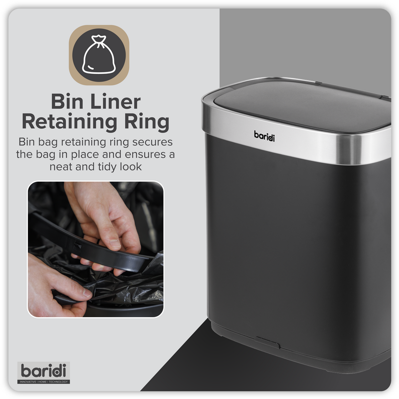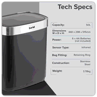 50L CAPACITY Spacious design, ideal for home and office use.TOUCH-FREE Motion sensor opens the bin automatically for hygienic waste disposal.
