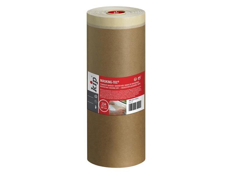 kip® 234 Paper Masker Tape is made from high quality premium crepe with environmentally friendly, unbleached super absorbent soda masking paper. Save time by masking and protecting surfaces in one. Can be used on door frames, skirting boards and windowsills.