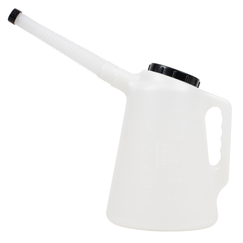 RESISTANT - Polyethylene jug resistant to oil, fuel and most acids.COMPACT - Removable flexible spout allows for easy storage when not in use.