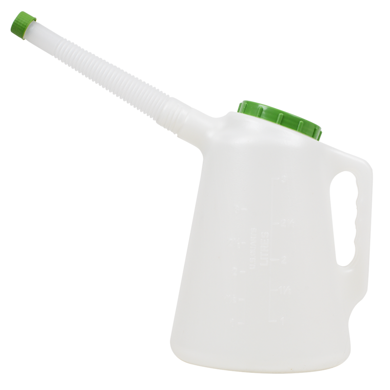 RESISTANT - Polyethylene jug resistant to oil, fuel and most acids.COMPACT - Removable flexible spout allows for easy storage when not in use.
