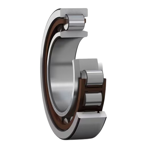 The outer ring of the NU design bearing has two integral flanges while the inner ring has no flanges. Axial displacement of the shaft with respect to the housing can be accommodated in both directions.