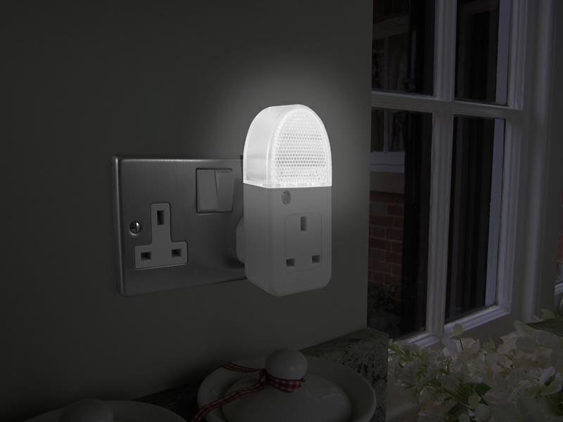 The Uni-Com Night Light requires no programming, you simply plug it into any 13A mains socket and turn the power on. Its plug-through design also leaves the socket free for other appliances. The built-in dusk to dawn sensor ensures the light will only illuminate in hours of darkness and it will automatically turn off when daylight is detected. The 3 long-life LEDs provide soft white illumination for reassuring comfort and safety and is perfect for bedrooms, hallways and use all around the home.