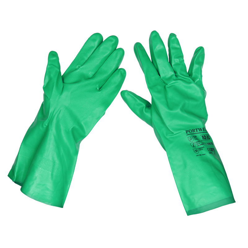 Sealey SSP34 Nitrile Gauntlets for use with Thinners 330mm Cuffed Pair Size 10