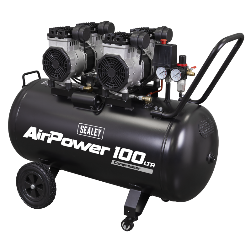 Sealey SAC10001S 100L Oil Free Low Noise Direct Drive Air Compressor 2 x 2hp
