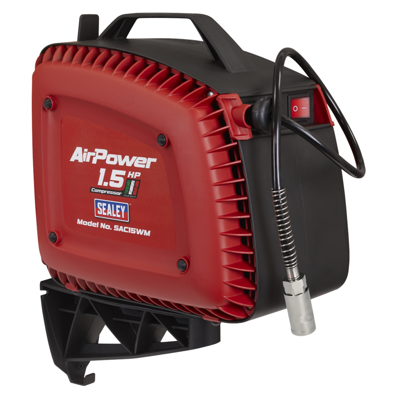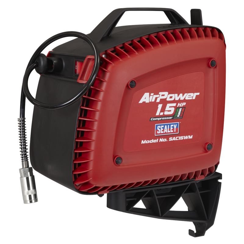 Sealey SAC15WM Wall Mounting Oil Free Air Compressor 1.5hp with 7m Retractable Hose Reel