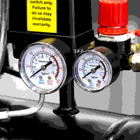 AUTOMATIC CUT-OUT- Fitted with fully automatic pressure cut-out switch and twin gauges displaying tank and working pressures.