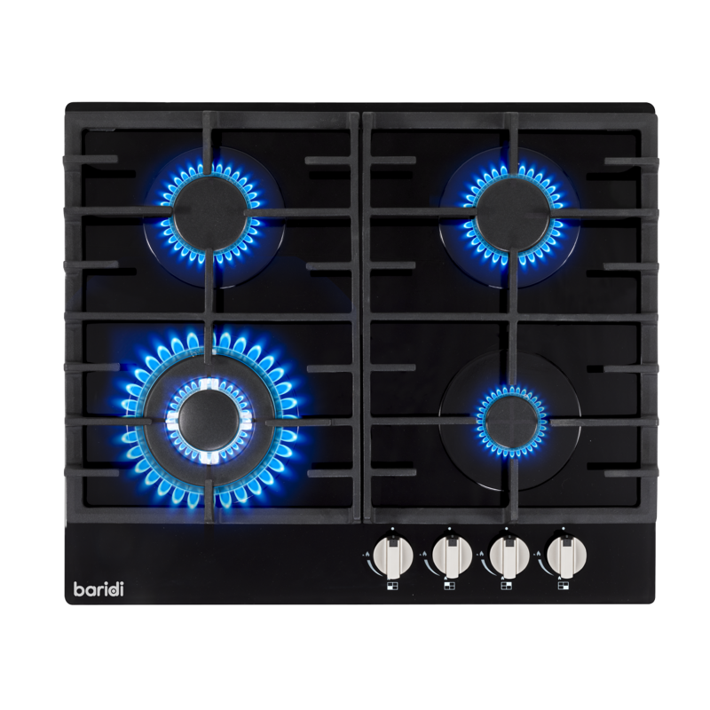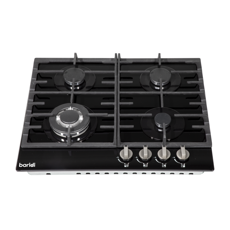 SLEEK STYLIGH DESIGN - Enhance the aesthetics of your kitchen with a stylish black glass gas hob, adding a touch of modern elegance to your cooking space.FOUR HIGH-POWER BURNERS - Equipped with four high-performance burners, this hob delivers a total power of 8kW.