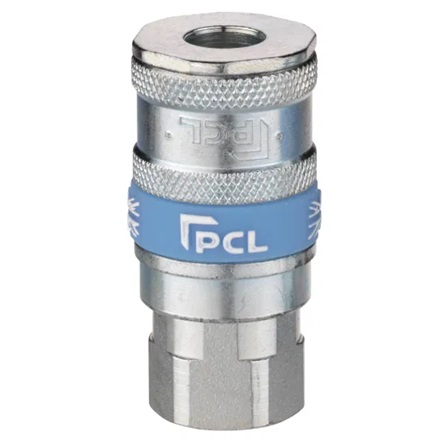 A precision-engineered quick-release coupling from the PCL Vertex series, manufactured in Sheffield, UK. This 1/2inch BSPP female threaded coupling features a robust double-action mechanism, making it ideal for trailing hose applications in automotive workshops, garages, and tyre shops.