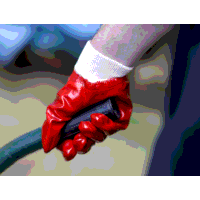 Knitted wrist waterproof glove with PVC coating palm and back for excellent protection against abrasion.Wide-ranging applications, as waterproof coating repels oil, grease and non-corrosive liquids.