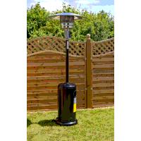 TRADITIONAL FREESTANDING STYLE - The burner head is positioned approximately 2.2m off the ground and the metal reflector directs radiation downwards and outwards.ADJUSTABLE HEAT - Variable temperature output controls and a fully enclosed propane gas cylinder chamber with safety tip over switch.