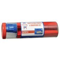 The pencil has flat sides to prevent it from rolling away. There are three colour coded grades of hardness to cater for different surfaces.