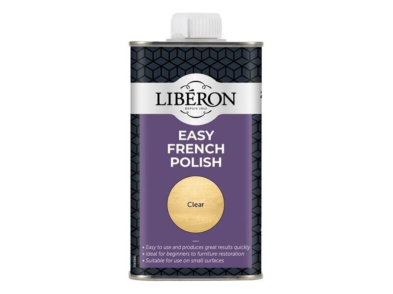 Liberon Easy French Polish contains a blend of shellac and resin to enhance the wood’s natural finish, and produces great results quickly. Suitable for use on small surfaces measuring 1m² or less. Ideal for furniture, carved woodwork and artefact\'s in rare or exotic woods. Its clear colour provides a natural effect and it is ideal for beginners to furniture restoration.