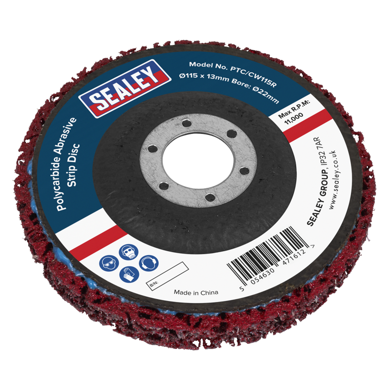 Sealey PTC/CW115R Polycarbide Abrasive Strip Disc 115 x 13 x 22mm - Red