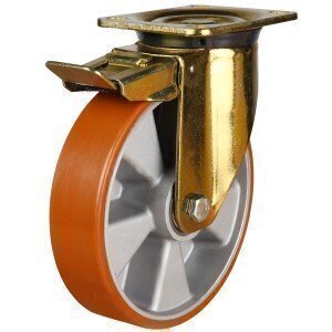 150GDH4PTABJSWB 150mm Heavy Duty Polyurethane On Aluminium Centre Braked Castor (Gold Bracket)