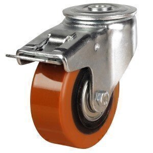 125DRBH12PTBJSWB 125mm Heavy Duty Polyurethane On Aluminium Centre Bolt Hole Braked Castor