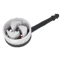 Durable gear operated 150mm rotary brush.Inner brush is propelled via water flow while the fixed brush on the outside prevents excess water spray.