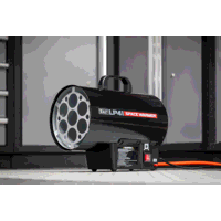 EFFECTIVE OUTPUT Impressive output of 40,500Btu/hr(11.5kW). Heats an area of 6850ft(194m) with a fuel consumption of 0.91kg/hr. Ideal for a workshop or garage environment.SAFETY - Features safety solenoid value which prevents the unit from leaking gas. Supplied with a fully approved gas regular and hose.