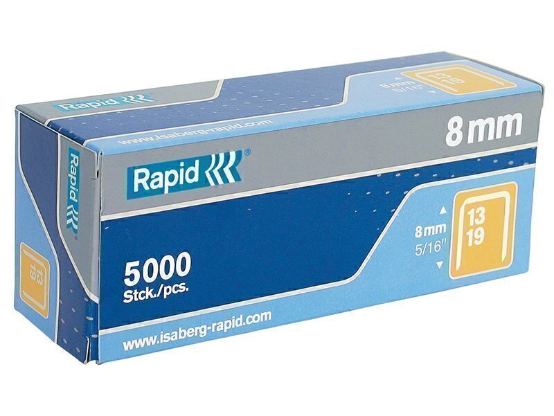 Rapid No. 13 precision cut fine wire staples are made from high performance galvanised steel for strength and durability. The thin wire makes the fixed staple almost invisible, ideal for craft and textiles where the staple will have minimal effect on the fibres.