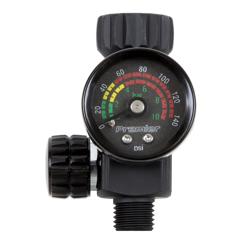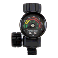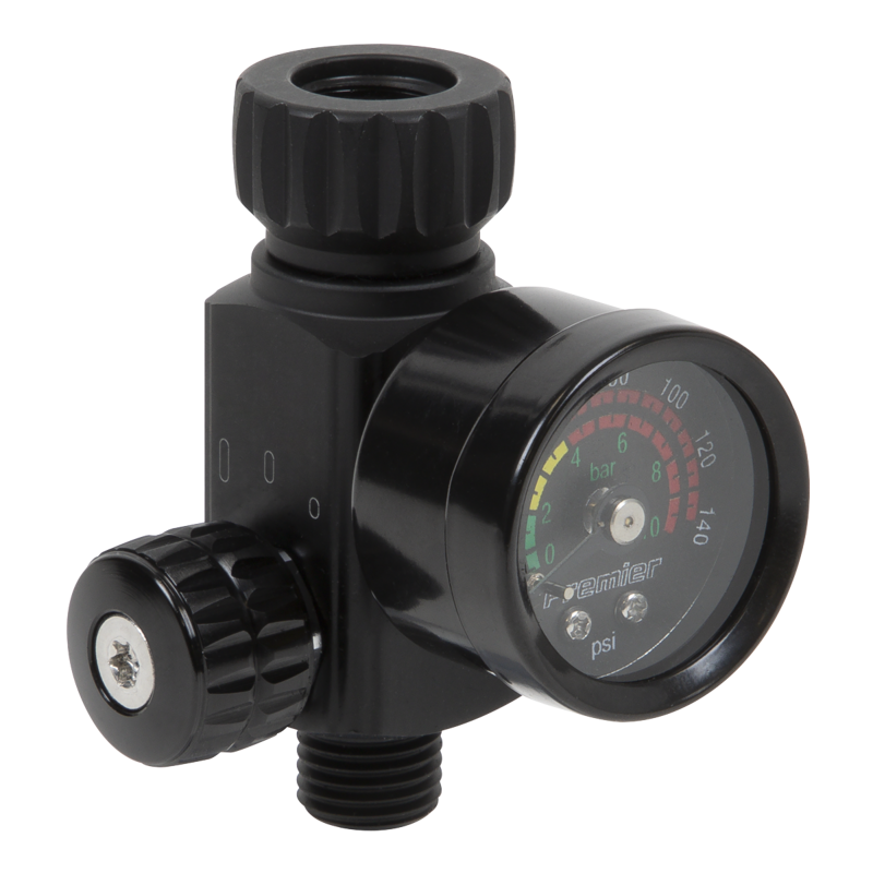 KNURLED THUMB SCREW - For toolless connection to your spray gun. GLASS GAUGE LENS - Provides more resistance to solvent vapours.