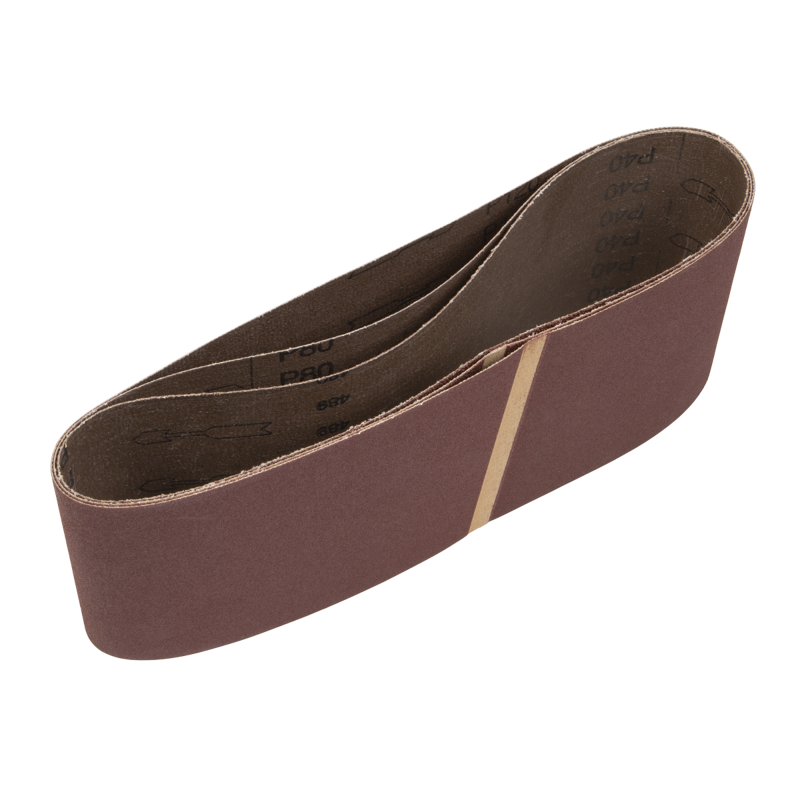 Hard-wearing sanding belt suitable for wood, paint, filler and metalwork applications.Ideal for quick stock removal and finishing with a strong cloth backing.