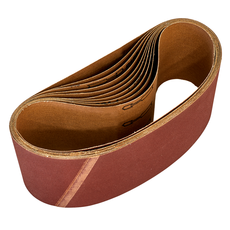 Aluminium oxide resin bonded sanding belt.Suitable for woodworking applications on portable, belt sanding machines.