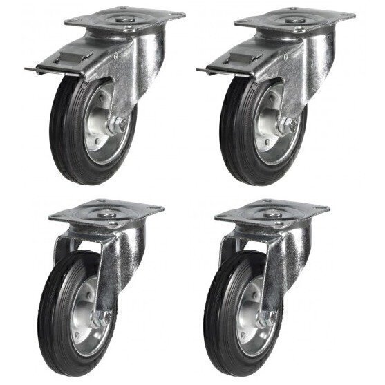125mm Black Rubber Steel Centre Castor Set - Swivel & Braked