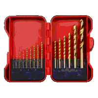 Set consists of 15 titanium nitride coated high-speed steel drills.Sizes 1.5 (x2), 2 (x2), 2.5 (x2), 3, 3.2, 3.5, 4, 4.5, 5, 6, 8, 10mm.