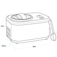 GET DELICIOUS ICE CREAM IN LESS THAN AN HOUR - 1.5L of ice cream in less than 60 minutes Automatic keep-cool function for 1 hour after preparation.EASY TO USE - Digital controls to set up preparation time. LCD display indicates time remaining and inside temperature. Thanks to its compact dimensions of 380 x 270 x 240mm, this ice cream machine comfortably fits into even the smallest of kitchens.