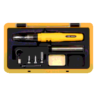 Butane Solder Torch, Deflector Nozzle, Solder Tips (x3), Hot Knife Tip, Sponge Stand, Safety Cap, Solder Wire, Spanner